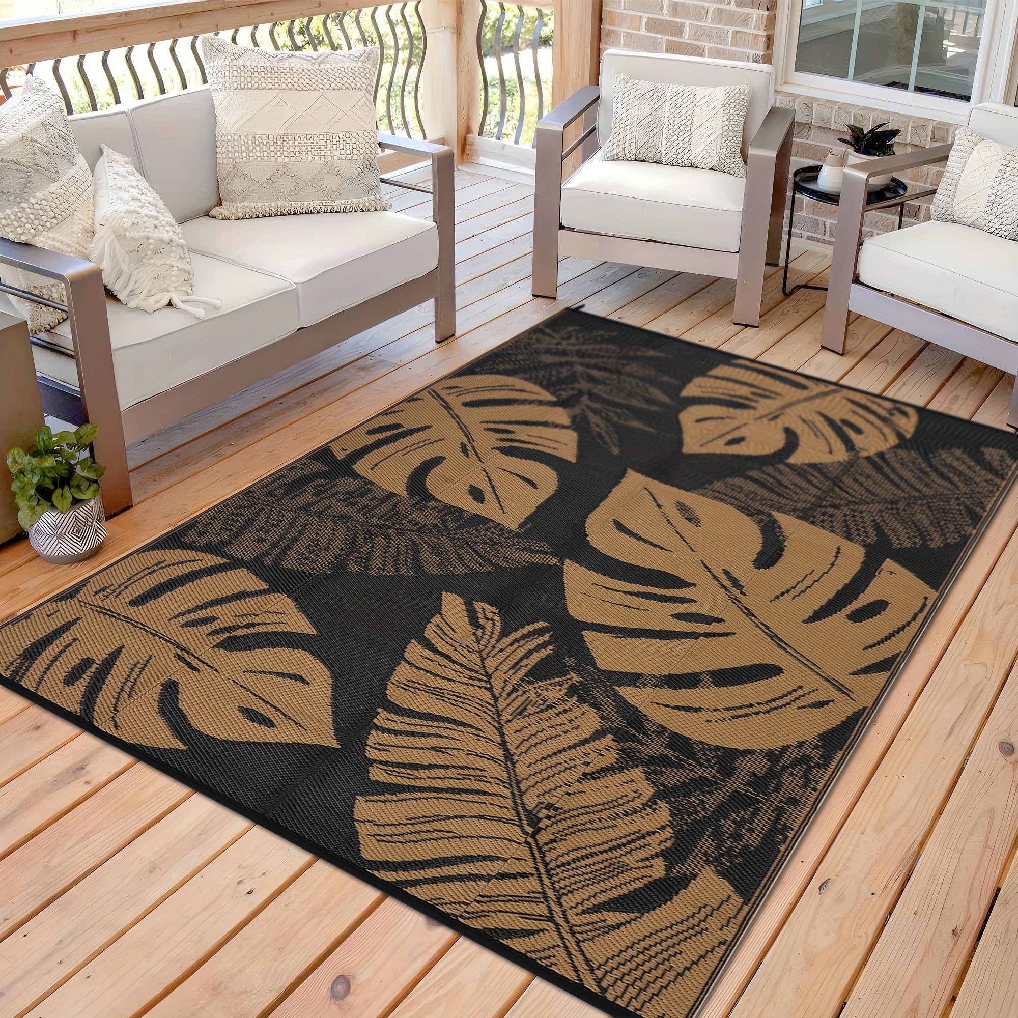Washable Outdoor Modern Print Area Mat Easy to Clean Thin Bordered Floor Mat Throw Mat for Camping Patio RV Camping Beach Deck Picnic Backyard Camping